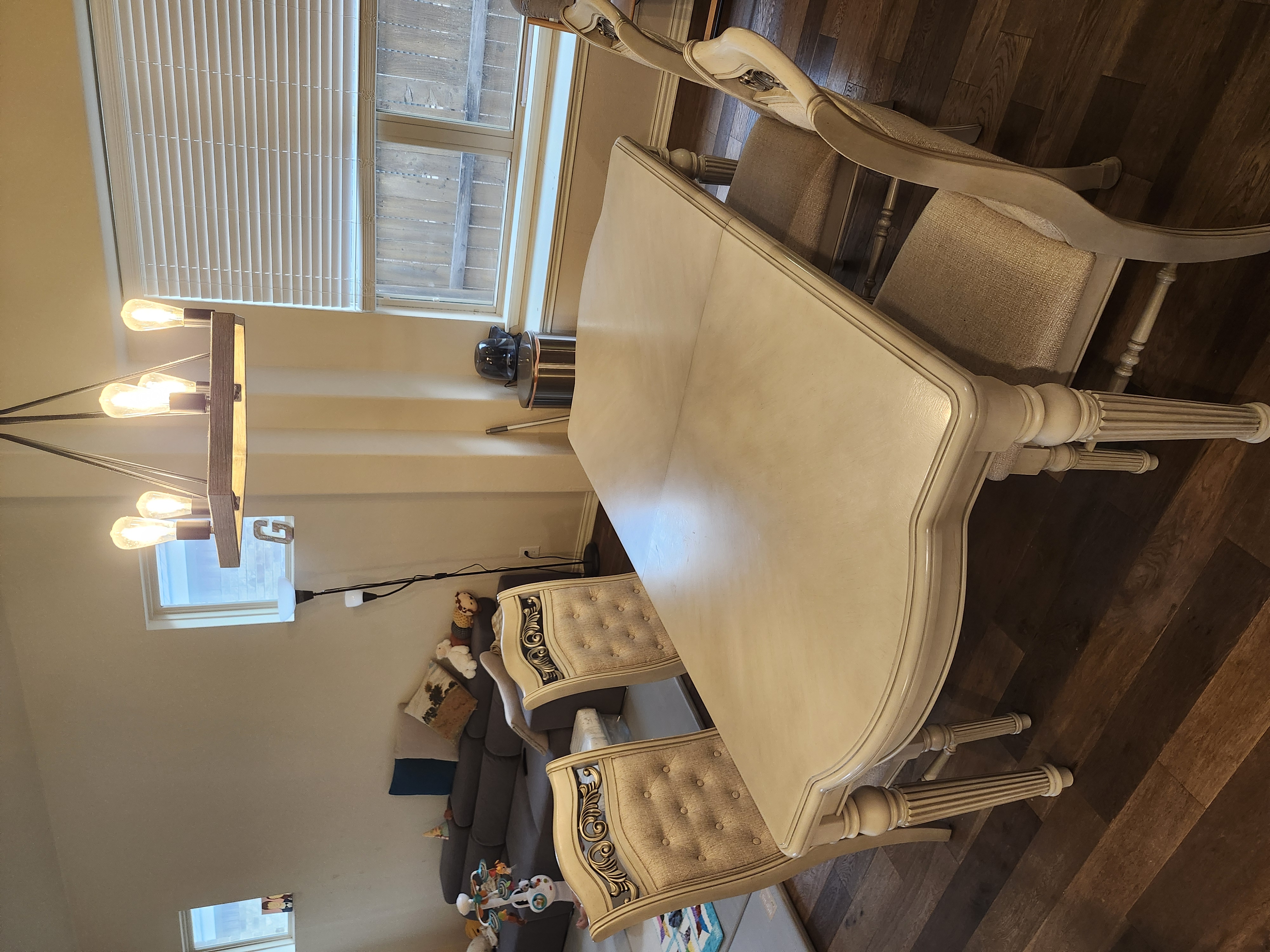 3. 다이닝 테이블+의자 세트 (Rooms to Go GALLAGHER AVENUE WHITE) - $1,200 (신품 약 $1,600, 1.3년 사용, 앤틱풍 화이트)
