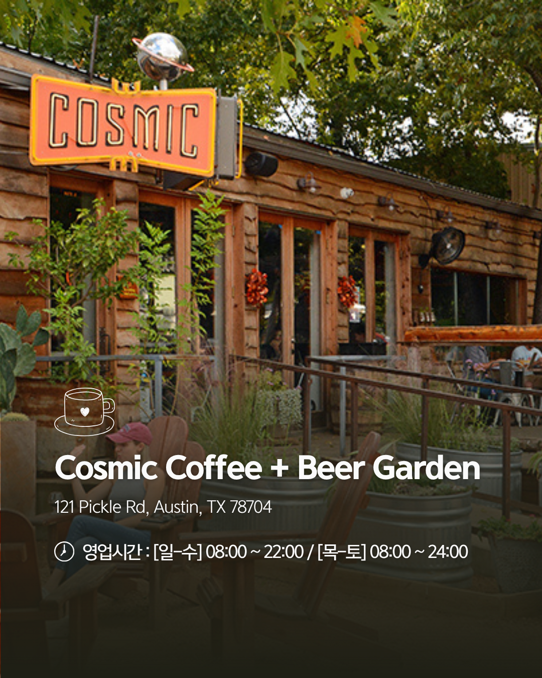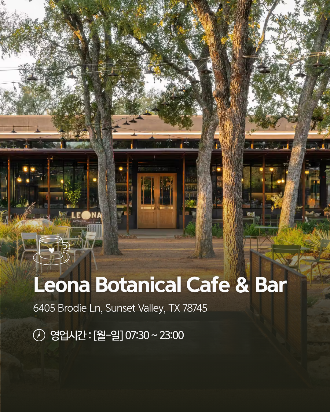 특징: 어스틴 남쪽에 위치한 거대한 식물원 컨셉의 카페 & 바.